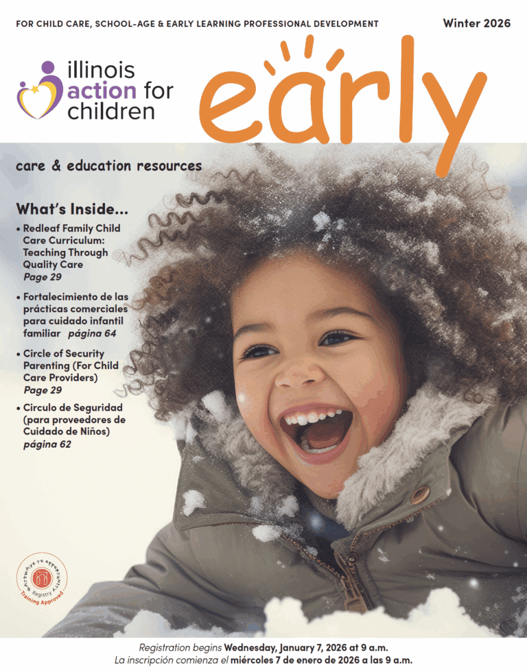 Read through course catalog to find a variety of courses ranging from CPR and First Aid, Child Development, Health & Safety, and more. Most of the professional development trainings provided in the catalog meets both in-service hours required by the Department of Children and Family Services (DCFS), as well as the CDA/CCP credentialing requirements.